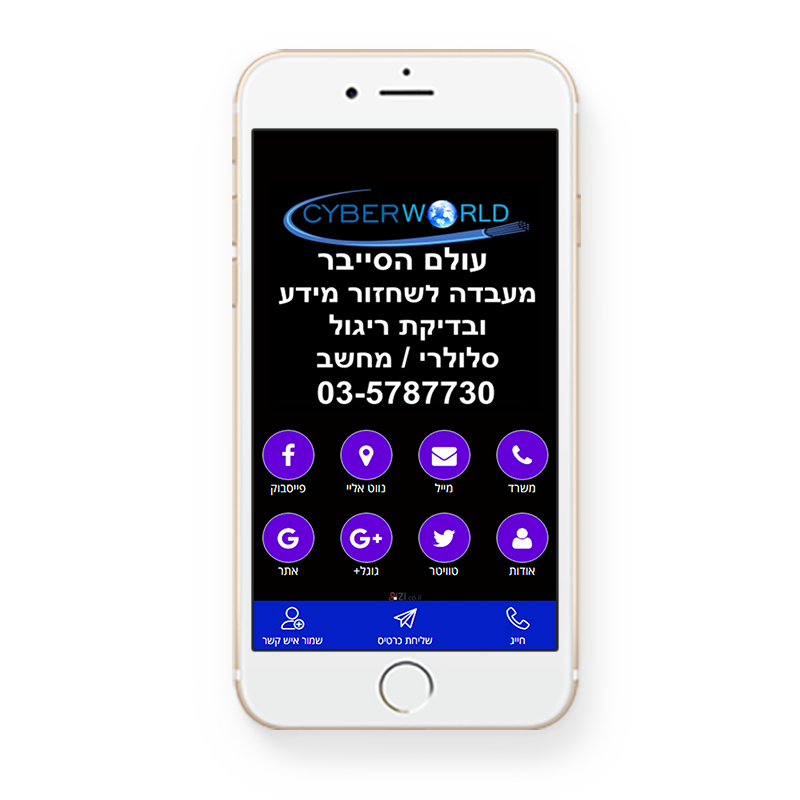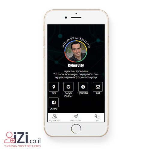 כרטיס ביקור דיגיטלי שבאמצעותו ניתן לשמור אותך כאיש קשר, לנווט אלייך באמצעות וויז,
